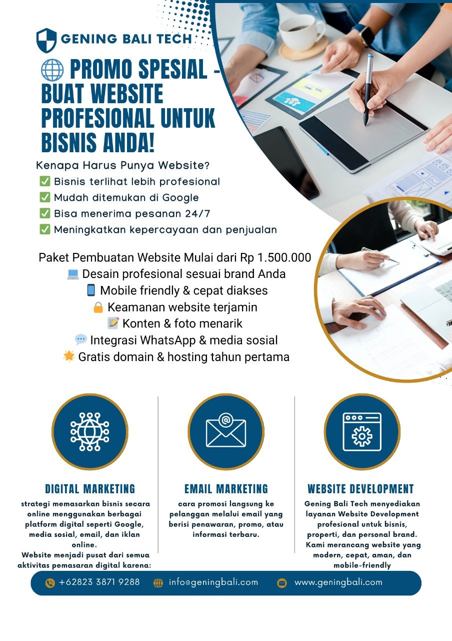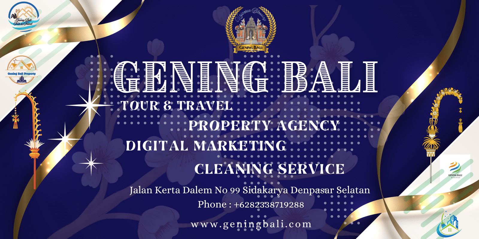 Gening Bali is a trusted multi-business company in Bali specializing in tour & travel services, property agency, digital marketing and website development, hosting solutions, cleaning & pest control, contractor consultancy, licensing, and landscape design — delivering integrated solutions for individuals and businesses across Bali.